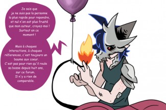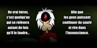 Narrateur: " Le Capitaine Sauveur est le plus grand super méga héros de tout le forum. Sans lui, les nuits seraient plus sombres ( et les jours aussi, d’ailleurs). Avec son sourire charismatique, il file à toute allure pour venir en aide à la veuve et à l'orphelin... Satisfait Monsieur?"